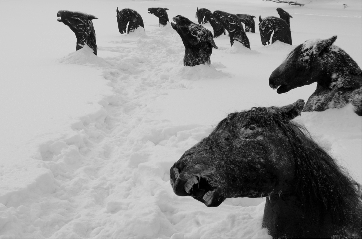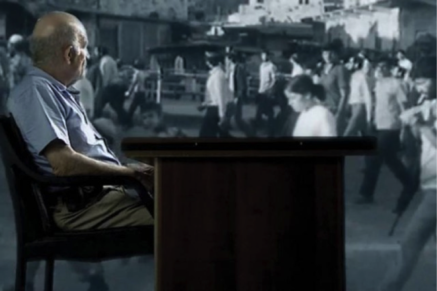 Kazma), a 4-channel installation, making disturbing visual parallels between